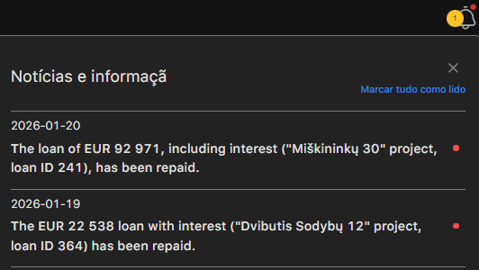 Se o empréstimo for totalmente reembolsado antes do prazo, será pago aos investidores o montante total investido + os juros acumulados até à data de fecho. Note que, dependendo do projeto específico e das condições previstas no contrato com o promotor do projeto, os investidores poderão receber juros adicionais.