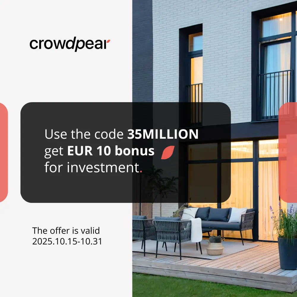 5. The EUR 10 bonus of the 35MILLION campaign paid to the user is automatically invested in an open investment offer on the platform on the day of the bonus payout. The automatically invested bonus cannot be canceled or sold on the Secondary market.